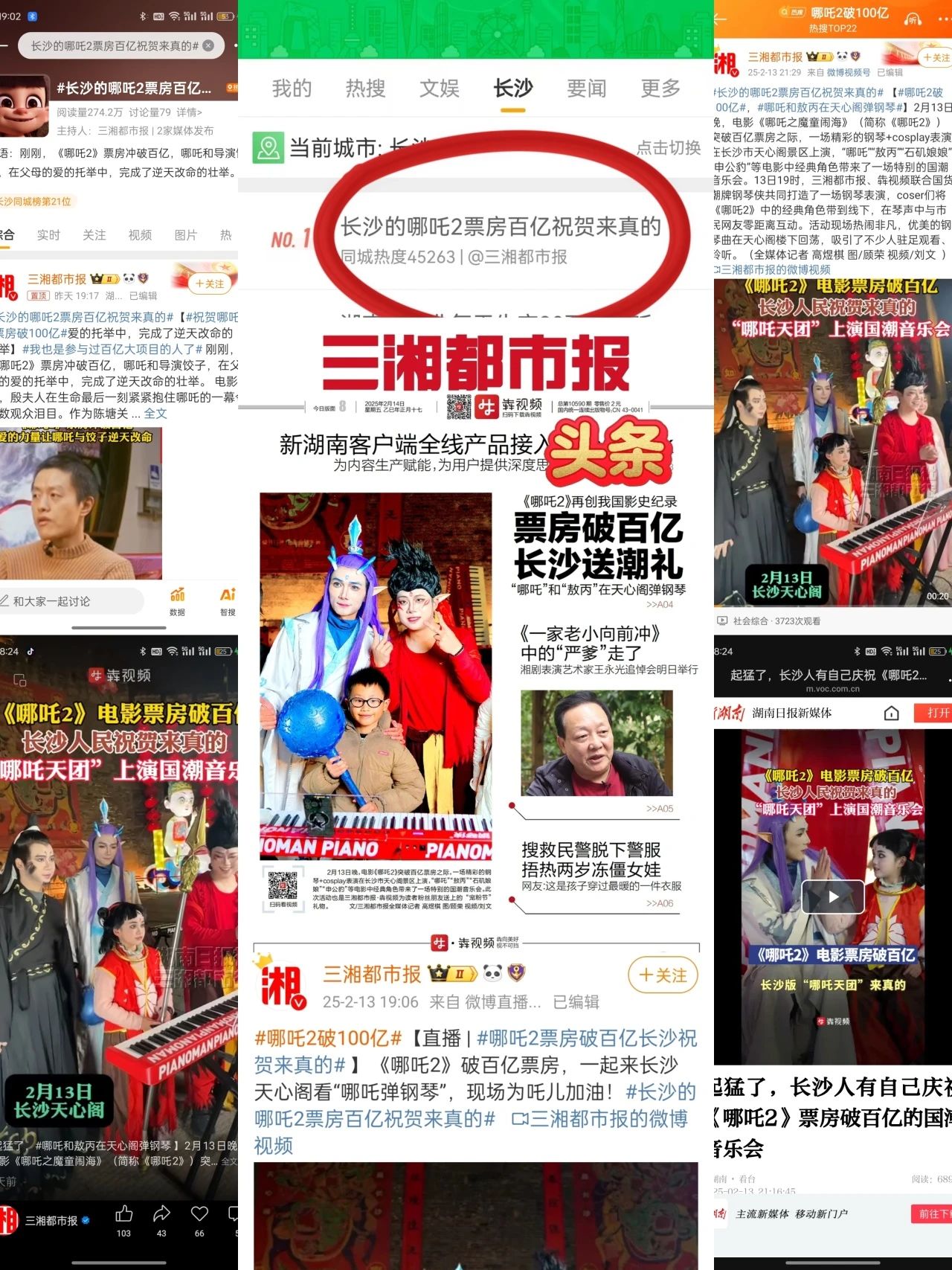 2月13日晚,为助力《哪吒2》票房破百亿,一场跨界狂欢刷屏长沙!国货潮牌钢琴侠联合三湘都市报、犇视频打造的"国潮觉醒·琴动星城"国潮音乐会,三湘都市报、犇视频和钢琴侠官方全程直播记录了这一高光时刻,#长沙的哪吒2票房百亿祝贺来真的# 引爆长沙同城热搜榜首!哪吒、敖丙破次元现身,钢琴侠折叠钢琴奏响山河,全网见证《哪吒2》票房破百亿高光时刻,更让世界听见中国乐器的澎湃新声!